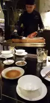 Service was top notch, friendly and efficient. We preordered the Peking duck which the chef brought to our table and then carved it. While it was very good I have had better in Beijing as well as in a local Chinese restaurant. We had to make the crepes ourselves. They were too small to properly add a reasonable amount of duck. Our server asked us how we would like our left over duck served. We said duck soup. It arrived and was absolutely delicious. However when I received our check I saw that I was charged $40 for the duck soup. This was completely unexpected. In summary good food but overly expensive.