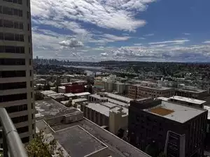 We needed somewhere for a drink and meal after 8pm and this place was close to the residence inn we were staying in. The bar is on the 14 floor (I believe) and has magnificent views of downtown Seattle, Lake Washington and Lake Union. Iam sure that on a clear day you can see Mount Ranier. The drinks menu was quite extensive, and the bartender did a good job. The food menu, on the other hand, was funky, to say the least. A big hotdog with crab sprinkled on it in a bagel bun, A "BLT" that turned out to be belly-pork with some kind of sauerkraut on it. We had hoped for something less exotic at that time of night, but as the kitchen closed at 9pm, we took our chances. There was a DJ. even though it was Monday, so we sat outside. Thankfully, the overhead heaters worked well and we soaked in the views. Go for the experience and the drinks. The place was about three-quarters full and seems to be a popular place.
