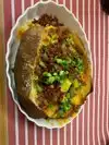 Delicious! First time experience, everything was wonderful and service was also great! The large potato is big enough for two.
