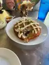 We went due to the interesting menu. The wait staff was amazing and the atmosphere was fun. However felt like the hashbrowns while good, there were too many. The filling was sparse. The chicken drops were suggested as an appetizer and they as well were dry. Now their homemade hot sauce was super yummy. Next time might order something with more sauce.