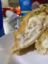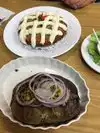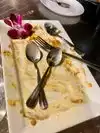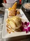 Just enjoyed a culinary treat here at Mrs Potato. Ordered a shrimp empanada appetizer- filled with lots of shrimp and cheese, and special garlic mayo, serving size more than generous. Sooo good. Split a chicken Rosti - their signature dish. Really delish food and very different. Finished with banana roll with Ice cream. That was worth the drive in itself. Our server let us taste 2 soups from the soup bar and there is no doubt they were made from scratch... lot of flavor.