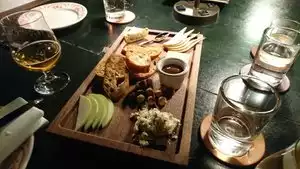 I wasn't sure what to expect. Other reviews talked about dress code or 'waiting downstairs' but we arrived early, not dressed up by any stretch of the imagination, and were taken upstairs immediately and given a very fine place to sit. After hearing about how experienced the servers were, I was ready for a little bit of 'holier -than-thou', but instead we were attended to by three very warm, friendly, knowledgeable and helpful young individuals. We started with a glass of wine (beer for my husband) and thought we would have something to eat first. We ordered the bread basket (comes with cultured butter, oil and salt flakes) and the cheese platter. It was perfect. The three different bread varieties were excellent. The cheeses were lovely (and came with a crispbread as well). Just enough. We took our time enjoying the food, and eventually tried the whisk(e)ys. My husband started with a Cadenhead Classic Islay, and later a lovely Bunnahabhain 18 (we were celebrating a health milestone for him). I had a Glenmorangie Milsean the waiter thought I would like, then just enjoyed a Writer's Tears, which I know and love. This was huge fun. The inventory is amazing. It was fun to watch the lithe young servers slide the rolling ladders across the floor, and climb several feet to reach a certain bottle. They are not only knowledgeable but fearless. Water glasses were quietly refilled, everything was noticed. We had a lovely, lovely time here. We strolled back to our hotel, just a few blocks away, the day still warm and light.