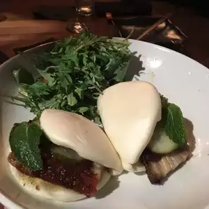 Close to the theater we were attending, went to explore the menu. The items we were most interested in were the small plates. Ordered six small plates to share. Each one was perfect in size for sharing. Two of the favorites were the lamb lollipops and the wild boar pot stickers. Great selection of speciality cocktails. Had a great waiter and attentive staff. We couldn’t resist hitting the gong on the way out, we felt it meant we were happy with the experience.