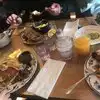We went there at 10 morning it was not crowded at all .we sat next to the window the place was dark so we asked the waitress to open the curtain but she opened it partially and still the place was dark . We had the pancakes 🥞 with banana 🍌 it was okay also we had the the egg with smoked chicken sausage it was delicious .l had pistachio latte it was artificial flavor so I ordered black coffee instead and the coffee was not good so my husband didn’t have any drink there. Overall the food was good but not excellent as we expected like in the pictures in short don’t go with great expectations.