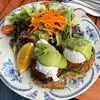 We had passed this place on our way to Fishermans wharf the day before and the crowd suggested something good! We dropped in the following day and had a really excellent breakfast. My son had the poachers with chicken sausage, and somehow got through the lot! I had the salmon rotolo with avocado, which was sublime! The key was using red onions which had been pickled Thai style, thus reducing their brassiness. My wife had pancakes which were feather light, accompanied by fruit and caramelised walnuts. The key to this dish was that it avoided the North American tendency towards over-sweetening. Under the clever title "Benediction", the menu listed a series of innovative options for this classic American breakfast. Highly, highly recommended!