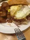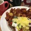 Cozy spot, interesting hash browns, flat and crispy. Frisco scramble was perfect, bring your appetite! The couple next to me had banana pancakes that looked special.