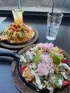 We had a hard time finding the restaurant - my map app did us dirty but we got there eventually after getting lost in the mall. We sat on the patio, which is very narrow and a bit awkward for the seating (and honestly was a bad call on our part because it was SO hot out that day). Eat inside, you'll be much more comfortable! We got the carnitas nachos and firecracker shrimp on wontons nachos. WAY WAY too much food, which we expected as my husband had been here before with friends. You might think that you are hungry enough to handle one order of nachos on your own, but I guarantee you, you are not. The carnitas nachos were delicious, I liked the pickled onions. The firecracker shrimp nachos were quite good but were very rich, which made it difficult to eat much (for me anyways). Drinks were great, service was very good. Our waitress was very attentive.