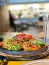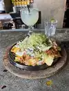 Vegan Chimachanga was delicious. Very fulling. I couldn't eat it all. Margaritas are delish. Service was great. Lively atmosphere. Quick service.