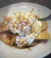 Not real nachos real ones have shredded cheese not the white powder stuff you put on top it, it has a gallop of sour cream on top and quacamole.not pieces of avacado. It has real chopped onions not pickled. The nachos i had did not have a good distribution of cheese beans meat, onion and chips. It was not pretty to look at -poor presentatin