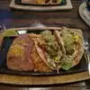 Atmosphere and food were amazing. Lots of choices…friend has celiac and she was very pleased with options and knowledge of staff. There were four of us and we shared the cheese dip and salsa appetizer, as well as the bottomless chips and salsa (no free chips and salsa here). Cheese dip was very tasty and the three different degree of spice salsas were a hit. Guys had draft beer and girls margaritas…great selection. My husband and I shared one of the fajitas (it was the one they light on fire at the table..see photo). Friends shared Fiesta Nacho. Ours was beyond delicious! They indicated theirs was just “ok” but they are very picky eaters. We were headed to see “O” at The Bellagio, and this location was perfect for getting there quickly! Will be back next time in Vegas!