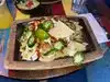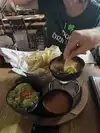 This is a casual dining restaurant with open outdoor tables. In addition to a regular menu they have a separate vegan menu with plenty of options. The chips and guacamole were delicious- light chips, not soaked with greasy oil and the guacamole had a fresh mild flavor. The taco salad with a light vinaigrette dressing was filling but didn’t leave you feeling stuffed. the enchiladas were delicious and came with black beans, rice, salsa very filling. We took a piece of their vegan chocolate cake to go with raspberry sauce and chocolate fudge sauce. Delicious.