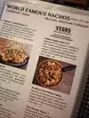 Large variety of specialty nachos with options for special diets. Price raged from mid to pricey. Lots of additional options on the menu as well. The food was good and the service was ok. Would go back to try something different.