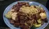 Really great food...just the right amount! We had a wonderful evening...entertaining chef. The steak and shrimp was excellent. Great fried rice...only complaint...to much dressing on the salad.