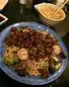 "I ordered the seafood combo Hibachi- with lobster, scallops and shrimp; however the chef went in the back (kitchen) and gave us some cold chicken fried rice that taste like it had been sitting for some time. Usually the chef cook the chicken breast on the hibachi grill and the rice in front of the customers. Furthermore, the chef appeared irritated when I requested onions and broccoli only for my veggies. I didn't want the mushrooms and zucchini. It was a very uncomfortable experience to say the least. However, my seafood, 2 veggies and noodles was great! I didn't eat the awful chicken fried rice.