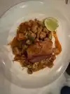 All the food we ate was good, and some was truly excellent. The chef’s special red snapper with okra could not have been better. The ginger martini was creative and delicious. The service was friendly, if a little slow. The only negative was the inspection by the hostess as we arrived in dressy casual with winter coats and hats. Before we had time to remove our outerwear, instead of asking if she might check it, we were told to remove our hats and our dress black jeans were frowned upon. There are better and friendlier ways to enforce dress code if it’s that important.