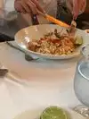 The restaurant is serenely beautiful; the food is delicious and beautifully presented, and the staff is impeccably trained. I can't say enough good things about this restaurant! Sadly, I had indulged in a large lunch and was not hungry enough to do the food justice. I ate light: Tom Yum Kai (seafood soup with lemon grass) and Chicken Larb salad (ground chicken with spices and lime). Both were light, flavorful, and delicious. I am eager to return and try more dishes. Everyone in our group, including those who had never tried Thai food, was wildly enthusiastic about their meals.