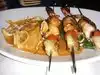 Na Thai is a fun bright place with a good atmosphere. We were there with a party of 16 which is not easy to take care of but they did a nice job. The menu was kind of crazy as ti seems like everything is covered with fried lobster. Lamb and lobster a Surf and Cloven Hoof I guess. We started with the appetizer platter and they were quite good and nicely presented. I had a whole fried red snapper and it was very good. There is something for everyone here and I was happy to see a lot of Thais eating here which means it must be good . Coconut soup was a big hit also.