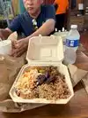 The set-up is like a food truck but there is an area in the back to sit if you want to stay. You walk to what looks like a fish tank and you point out what you want to eat. There are plenty of options. If you don't speak Creole, make sure to point dry specifically to where your food option is. The service is fast. Th parking is non-existent due to the location. Plan accordingly.