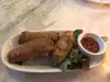 We had a fun group dinner on a Thursday night. We shared the Collard Green Spring Rolls, which were phenomenal, and the Cornbread appetizer, which was very good. I ate the whole Red Snapper, which was perfectly cooked, crispy coated outside (not at all greasy) and a fantastic light tomato sauce poured over with chunks of stewed tomatoes and okra with a few bell peppers in there, too. Moderately spicy, my mouth had a pleasant buzz. Had their Jamaican Moscow Mule which was very tasty, too. Others enjoyed their Oxtail Pasta, Negril's Oxtails entree, Jerk Chicken & Pineapple Waffle, and Calabash Stew. One member of our group went back for more spring rolls another night. I dreamed about my Red Snapper.