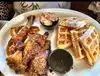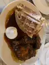 Nice vibe. Good service. Food was good (I had waffles and jerk chicken) out of 8 people only one person had an issue with their food and sent it back for another dish. The manager Tasha came out very aggressively and rude. Not proper customer service, was yelling and questioning everyone at the table. I’ve never experienced anything like that and will never return to this restaurant. Good but not great Jamaican food somewhat pricey for portions size.