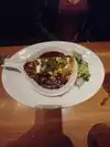 Rib Eye was good. Potato Au Gratin ok. Steaks r a la cart. Schnitzel hard and dry. $12 for Wedge salad. Just ok. All is just good but very high priced.