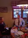 Initially when we walked in was worried as it was a bit noisy. We got seated by the bar near the door. Worked out very well. Do try the meatballs with voodoo sauce. I had the blue plate special, stroganoff.. very good. Other parties had the fish.. very good.