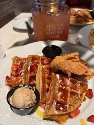 First time going to Nellie's at MGM Grand. This restaurant, we found out, is owned by the family of the Jonas Brothers. Overall we thought the food and service were both fantastic. The chicken and waffles dinner in particular was very tasty. Would've probably given this a 5 star but we felt it was a bit too pricey overall. Nice dinner in Vegas if you are looking for southern comfort food.