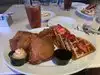 We were with a work group of 12 people. A few people ordered the meatloaf and were very happy. The serving was very large and it had some spice to it that made it a little different in a good way. The grilled shrimp dinner was generous (12) and flavorful though maybe a little salty. Grilled vegetables were fresh and were tasty (very buttery). We had appetizers of biscuits and fried green tomatoes. Both were a hit with our group. The Hawg Hill Plate (bbq) received high marks as did the fried chicken. The collard greens were a bit sweet and were sent back for green beans. The banana pudding was noted as good but lacking on the amount of cookies. Another note on dessert was that members wanted peach cobbler but when given a description of the cobbler we learned it was a skillet of peaches topped with ice cream and sprinkles of what would/should have been the crust. How is that cobbler? We decided against that. Our server was excellent. She was very friendly, efficient and full of smiles. All in all we had an enjoyable dinner though the prices were a bit higher than I would have liked but then every place in Las Vegas on the strip seems to be over priced these days.