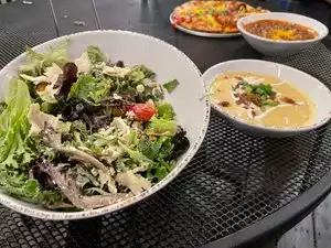 We were in this part of town for an event and needed to eat some dinner. We were looking for something quick and had an outdoor patio. This fit that bill. I think a better lunch spot, but we weren't looking for anything heavy. I will say if you have a nut allergy, PLEASE read the menu in detail. I ordered the Cobb salad and one bite in; I knew it had nuts in it. My fault. It is clearly listed on the menu, but I have never had pecans in a Cobb Salad before. I got soup and salad, so I was able to eat my soup and a piece of my husband's pizza. I believe this is a chain or a franchise. You order at a counter and then they bring out your food. It was fine but nothing special. I don't think I would make a special effort to come here to eat.
