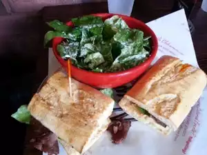 WOW bring a friend to help eat the food. The salads are so big and have so much product you wont believe it. My husband had an Ahi Tuna on some amazing bread. The chicken sausage gumbo soup was very flavorful. They have a condiment area with roasted garlic, capers, three kinds of peppers and many more things. I have only one thing to say about this place........ PLEASE OPEN ONE IN MINNEAPOLIS AREA!!!!