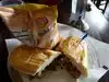 Super good sandwiches. It is so loud that ordering from the girl at the register is difficult, and she made no effort to be better heard. My husband was going to take a bottled water, then changed his mind and ordered a fountain drink. The register person did not read the order back to me, and only when I got home did I realize that we were charged for both the bottled water and his fountain drink, even though he told her he was changing to the fountain drink. I don't know when we'll get back there to claim the mis-charged $1.25 for the bottled water. When we went, the tables were in short supply, but we caught one as someone was leaving. It was dirty, but in just a short time someone came to clean it. The unsweetened iced tea dispenser was empty, so I went for the Splenda sweetened. It seemed pretty weak, but maybe they all tasted that way. The food took about 10 minutes to be delivered to the table. My husband ordered the Grilled Chicken sandwich ($7.79) and chose chips. When it arrived, it was accompanied by a small bag of chips--that was not expected. He would have ordered another side had he known. He said the sandwich was quite good. I ordered the Grilled Steak sandwich ($7.99), with coleslaw. The coleslaw was average, but the steak sandwich was delicious. It didn't look large, even though it was on a small baguette type of roll, but I found I could only eat half. It was very chaotic, loud, and impossible to have a conversation. Because the food was good, we will likely return, but would prefer a quieter, less chaotic place.