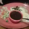 As we were being seated, they asked if this was our first time (it was) and they gave us each a complimentary cup of Tortilla Soup. It was very good, with lots of shredded chicken and veggies in it. It is a restaurant specialty. We ordered two meals with a variety of items. Everything was well made and tasty. We especially liked their red sauce. The manager came over and talked with us. The waiter was attentive and all of the staff were very friendly. The salsa was tasty and a little spicy, a little different then other Mexican restaurants. They also gave us complimentary Sopaipillas, for our 25th wedding anniversary. They were very tasty.