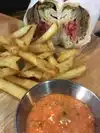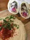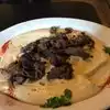Baba Ganoush with a hint of spicy heaven. Get the meat mezza platter to taste a sample of the different items with the most amazing flavorful spices that explode your senses crazy! ?They also do Vegan mezza. Get a side of hummus too and eat. Enjoy with the warm homemade to order pita bread the size of a large pizza that they will keep on bringing you!