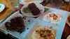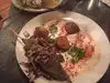 A mezza veggie platter, lamb kababs, a side of tzatziki sauce, and we went to town. Authentic Lebanese fare, in a somewhat small restaurant, delicious bread, and terrific mint infused lemonade to wash it down. It was a quick, and reasonable lunch that the 3 of us very much enjoyed. the service was somewhat scattered, but the food was the star of the show.