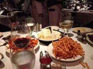 Bad experience: One hour to be seated, 15 minutes for the waiter to take our drink order and did not ask every person except he screamed out if anyone wants a drink!!!!also it is so loud that it is impossible to hear the people across the table. The steak was dry and had no taste.