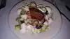 This is a well known steak house in Dallas. Met a group of friends for the evening. Because we had a large group, we could not be seated until everyone got there. Some were stuck in traffic so we hung in the bar which was fine. Good drinks there. But as people showed up, we literally couldn't be seated until we were down to just one person outstanding. Servicer was quite rude, not unlike what you would expect in an old timey steakhouse. Tables were so close together, it was difficult to get out once seated. It was very noisy as well because of this. A friend and I ordered a bottle of white wine to share which was taken away, not kept in ice by the table. We constantly had to ask for refills and couldn't really see where the wine was taken. Most had meat or fish, sashimi which looked ok. I am vegetarian and was served a spicy tofu vegetable dish which I really couldn't eat because the sauce was so thick and sweet. They did, however, serve a complimentary caviar serving which was the highlight.