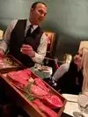 Restaurant atmosphere, service, and food are top notch! They have valet parking, meat presentation, piano player. It was my birthday and I received complimentary champagne for a toast. Staff was so welcoming. I got the veal chop and it was to die for! We ordered the salted caramel banana pudding and it was incredible. Cotton candy presentation was so fun! Zack was our service, he’s outstanding! Will request him next time. Can’t wait to return