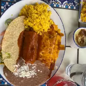 staying at a local motel had my food delivered. Chicken enchilada hot but lots of grease. Rice portion not enough to feed a baby that was delivered cold. It looked like I was supposed to have a small side salad two shredded pieces of lettuce 7 chopped up tiny pieces of Tomato. Good portion of black beans they were hot not cold. I heard this restaurant was very good I did not think so. I would not recommend this restaurant specially if you want food delivery. I spoke to the manager about the cold rice he tried to blame the driver. I was only one mile away the driver delivery came very fast. Shame on you trying to blame the driver.