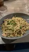 Went in for a quick bite. Ordered the Carbonara. Sadly, this carbonara was slightly warm, and was made with cream. Carbonara isn’t made with cream 🤷🏻♀️ It also had garlic in it. Super disappointed considering it was highly rated for the Carbonara.