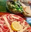 A rather good Caesar salad even if the ingredients were limited but a very very ordinary pizza without much taste quality. Good service . Quite pleasant room. Addition according to city prices