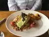 We came here for drinks and to try the cheese plate as part of our progressive meal on a Friday afternoon. The Sex in the City cocktail was tried by one of our group who wasn't pleased with the purple flower and spear of pineapple leaf that it came with, but otherwise seemed to be palatable. The cheese plate had a nice little selection of cheeses that rounded out our afternoon's progressive meal nicely. Tips: They don't open until 5pm, so don't try arriving before 5pm, or you will be turned away. Be prepared to find street parking. Ask for an outside view table, you'll likely wait a bit longer, but the view is nice. On a warm day it can get pretty warm on the sunny outside side of the restaurant. They have both elevator and stairs for getting to/from the top-floor restaurant.
