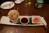 The place is nice, more modern looking than usual sushi places. We have several Japanese sushi restaurants in our area, but this restaurant has a different selection. Thus, we discovered terrific Japanese food. The portion was adequate, and the taste was delicious. Their green tea was fantastic to go along with your meal. The ambiance was just fine. Everything, just everything here, was perfect. The service was impeccable. Our server, Sergii, was so lovely and polite. Sergii answered all our questions and was very pleasant. We asked for extra sauce, and he was pleased to accommodate our requests. We were happy to be here and very much appreciate the service and atmosphere of this place.
