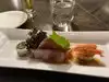 Coming solo I was installed at the sushi bar; my cook went out of his way to satisfy me and the rest of the service was impeccable: attentive and kind without ostentation. Experience to try especially with sashimi revisited...