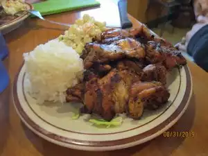 Ate dinner here last night, ordered the number 11, the Korean Chicken regular size and it was enough food to feed two people or more. A plate stacked with char broiled chicken with scallions, two scoops of white rice, and a scoop of macaroni salad. It was great food at a tremendous value. The restaurant has a Hawaiian theme of course with plenty of surfboards, outriggers, etc as decorations . The service was good, the restaurant was clean, casual, and comfortable and I really enjoyed my visit. I highly recommend this restaurant because of the great value. You get a large amount of food for a very reasonable price and it tastes good. Hard to beat a deal like that.