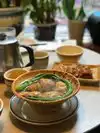 A fun, warm ambience with lots of happy people slurping and laughing. The food is as great as the authentic tea parlor surroundings. A fun menu to explore and something for all tastes and diets. One of my favorites in Manhattan....