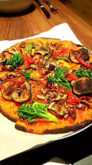 Lunch on the patio. Had gluten free white pizza and grilled farmer market. The crust was not good as with most gluten free pizza but nice flavor. Simple but good grilled vegetables. Good service.