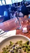 Whatever you do, do not seat at the high tables by the bar. The bartender, even though he was excellent, is overworked and the service is slow. After having said that, the food is excellent, large amounts and served hot. The restaurant is very attractive and has great atmosphere. I highly recommend the Pig pizza. Prices are moderate.