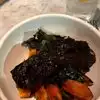 Good dinner but they were out of short ribs and that was my favorite so I had scallops with Parmesan risotto which was good but not hot, warm but when you expect hot food warm is surprising. The salad was forgotten and brought during dinner which was okay. Salted Carmel brandino which is like pudding was good but very salty. Next time I hope short ribs are there.