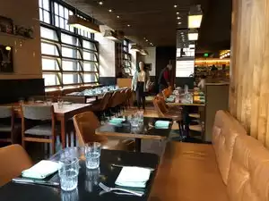 This Italian restaurant in a vast room leaves plenty of space for enjoying a delicious Italian dinner. The pizzas and pasta are first rate, among the best we have had. Unfortunately, the pasta portions were very small. Consider them as (expensive) starters like in Italy and take a main dish to follow. This will not lighten your bill but your stomach will be contented.