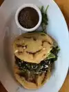 We tried this restaurant on a Friday night, not quite knowing what we would get in terms of a wait (they don't take reservations). We were told it would be about an hour, but there is seating at both the bar & out on the covered patio for waiting customers, where drinks & appetizers can be ordered. Bartenders were super friendly, and I was given a shot of the sangria to taste before ordering a full glass (on his suggestion). We tried the queso fundido, which was great- I just wasn't expecting to have such a large quantity of big mushrooms in it, but it tasted good nonetheless. We were surprised to be seated after about 30min. The staff there works so seamlessly and quickly in getting customers moving, but you don't feel rushed as a diner. My boyfriend & I both had the gorditas; he is vegetarian (not a ton of options on the menu), I added pork to mine. I also got a side of pino beans which they refried for me. We both agreed the food was amazing, and the pork (carnitas style) was some of the best I've ever had. Excellent food & service. If I'm ever back in Portland, I will go back.